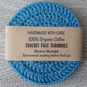 100% Organic Cotton Blue Crocheted Handmade Face Scrubbies, Pack of 3, Reusable