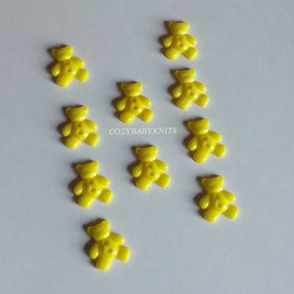 Pack of 10 Buttons. Bright yellow teddy bear buttons. Approx size 20mm x 15mm The actual shade may vary from the picture. Will be sent by royal mail second class.