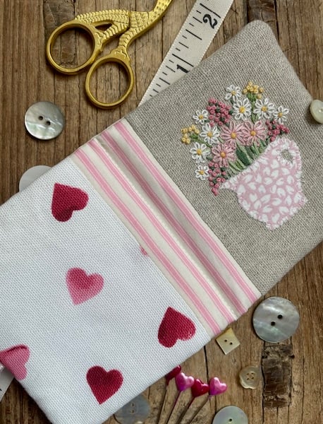 Hand embroidered needle case using Emma Bridgewater ‘Pink Hearts’ fabric