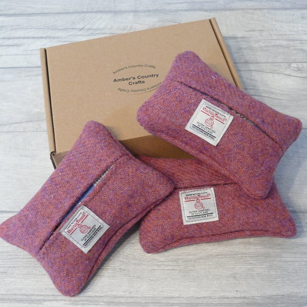 Three harris Tweed Tissue Holders comes in gift box. Dry clean Makes a nice gift Postage is recorded 2nd class. Thanks for looking