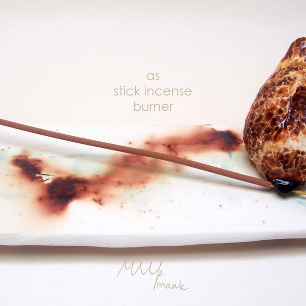 FREE SHIPPING!! (Royal Mail tracked 48) – Overall size: 230 x 87 x 63 (mm), measurement tolerance is 5 mm – Multi-purpose: for stick incense, cone incense and tealight – Saggar pottery (made with a special process) – Partially glazed earthware (ceramic) – The sparrow can be freely arranged to wherever you like it – Free standard shipping – Incense and tealight not included – Safely packed with green bubble wrap ( made with a minimum 30% recycled plastic and 100% recyclable) and FSC postage box ——————————————————– What is Saggar Process? In short, It’s a firing process that enables the potter to create one-off unique patterns and colour on the potter’s surface. It will need to be done in a specific way and equipment that is different from regular modern-day pottery firing. This is a process that makes the piece truly unique because even with the same material, temperature and arrangement, it always gives different results. Sometimes, not even close. So, not even the creator of the piece can make a 100% replica of their creation.